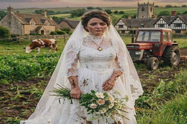 Це було видовище, варте заголовків усіх таблоїдів Котсволдса. Коли старий трактор містера Гіггінса, кашляючи сизим димом, зупинився перед готичними воротами церкви Святої Марії, натовп гостей завмер.